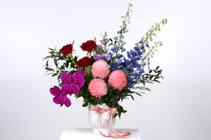 This premium arrangement is our signature look, including the most premium long lasting blooms set in a keepsake ceramic pot - spoil a loved one!
