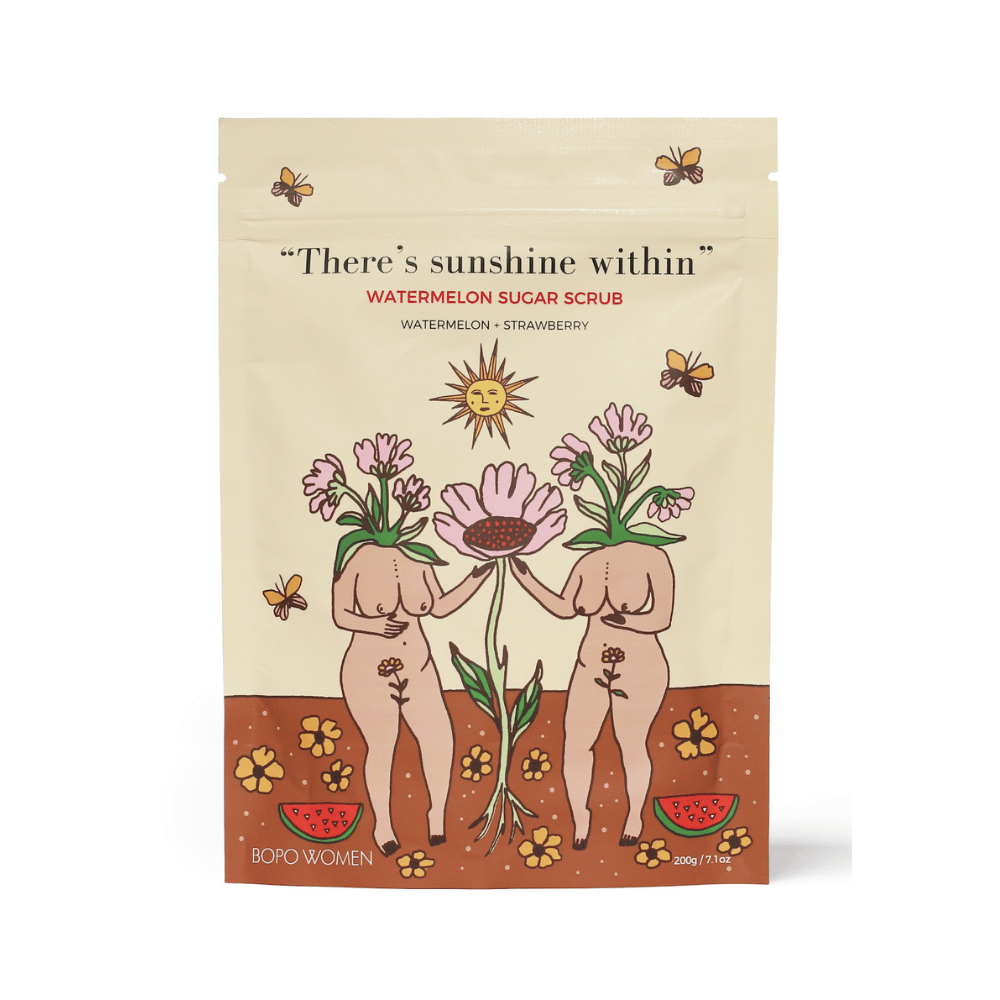 The Watermelon Sugar Scrub is a refreshing nutrient rich super scrub to help you kickstart the day. Skin healing superfoods like watermelon oil, strawberry powder and azuki beans are blended with a soothing natural exfoliant base to leave your body feeling deeply moisturised and smelling like a dream, long after you use it.
