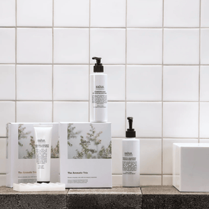 A transportive edit for hand and body care, perfect for moments of pause and reset. For hands and body. This set contains a Tuberose & Grapefruit Hydrating Hand Wash 195ml, Geranium & Bergamot Hand & Cuticle Cream 100ml and Eucalyptus & Aloe Invigorating Body Wash 195ml.